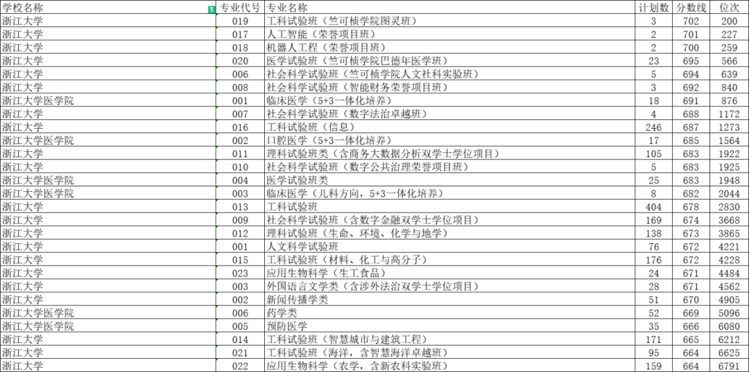 浙江大学投档分数线是664分,投档位次号是6791,专业是浙大应用生物科学(农学,含新农科实验班)。
