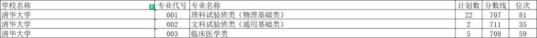 清华大学投档分数线是707分,投档位次号是全省81。