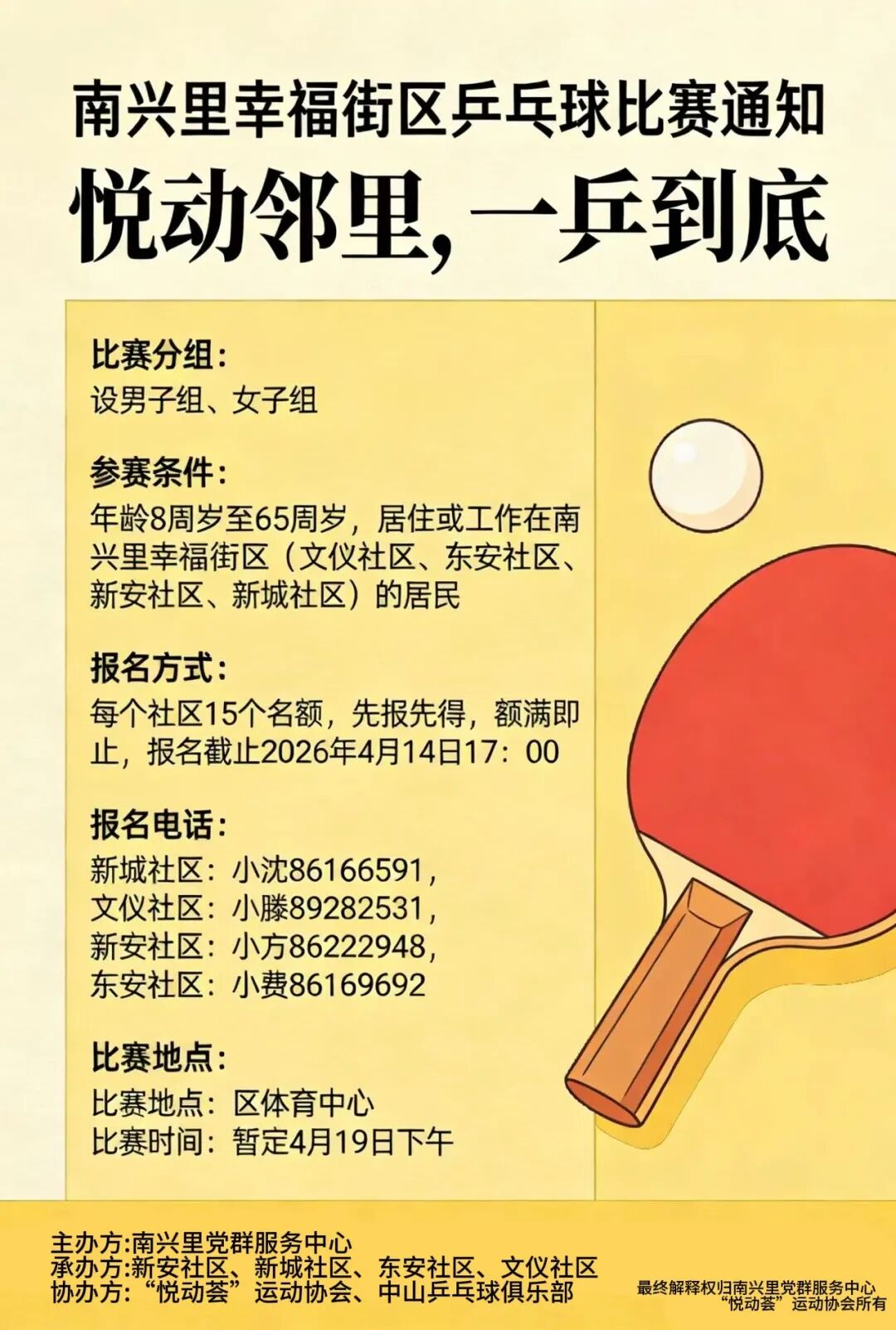 南兴里幸福街区“乒”搏出彩 乒乓球赛等你来战!