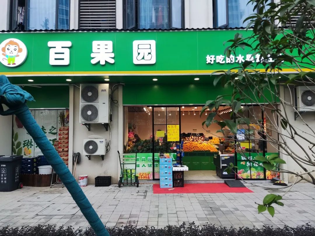 超市百货类:晨光文具、尚仕图文、灵峰超市、百果园、胜蓝水果。