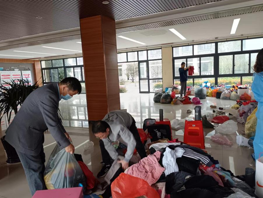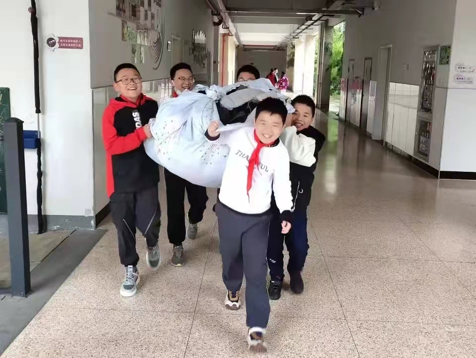 临平区超山小学师生积极响应募捐倡议,纷纷从家里带来了羽绒服、棉袄、棉裤、鞋子等过冬衣物,这些衣物都是全新或者九成新的。同学们排起了捐赠冬衣的长队,有的同学拎不动,就用双手抱着;有的同学抱不住,就用肩膀扛着;还有的同学干脆叫上好朋友一起搬。