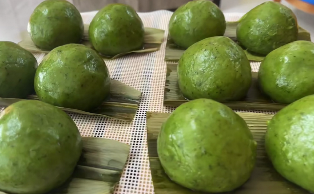 艾草挤汁,糯米搓团,根据口味配上咸馅或者甜馅,把春天包裹进这颗小小的青团。
