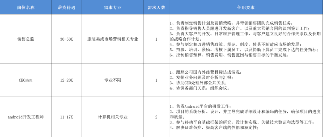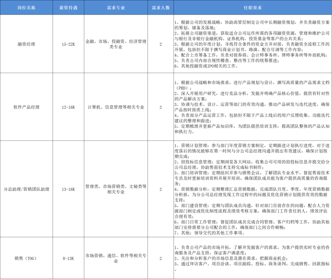 CEO助理等多个岗位