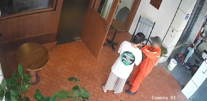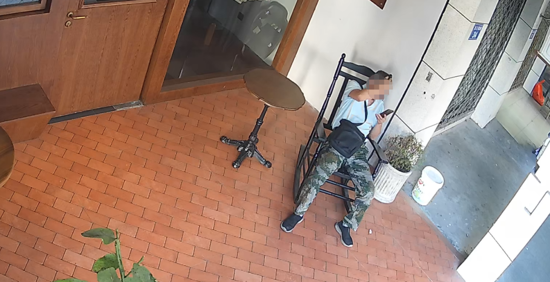 视频上,一位姑娘为坐在店门口的