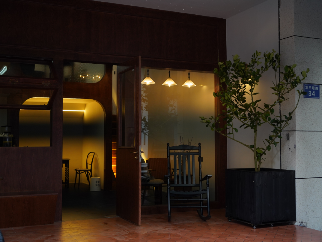 她在店门口放了椅子和桌子,