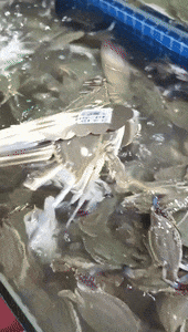 上周五他们就已经开始卖梭子蟹了,