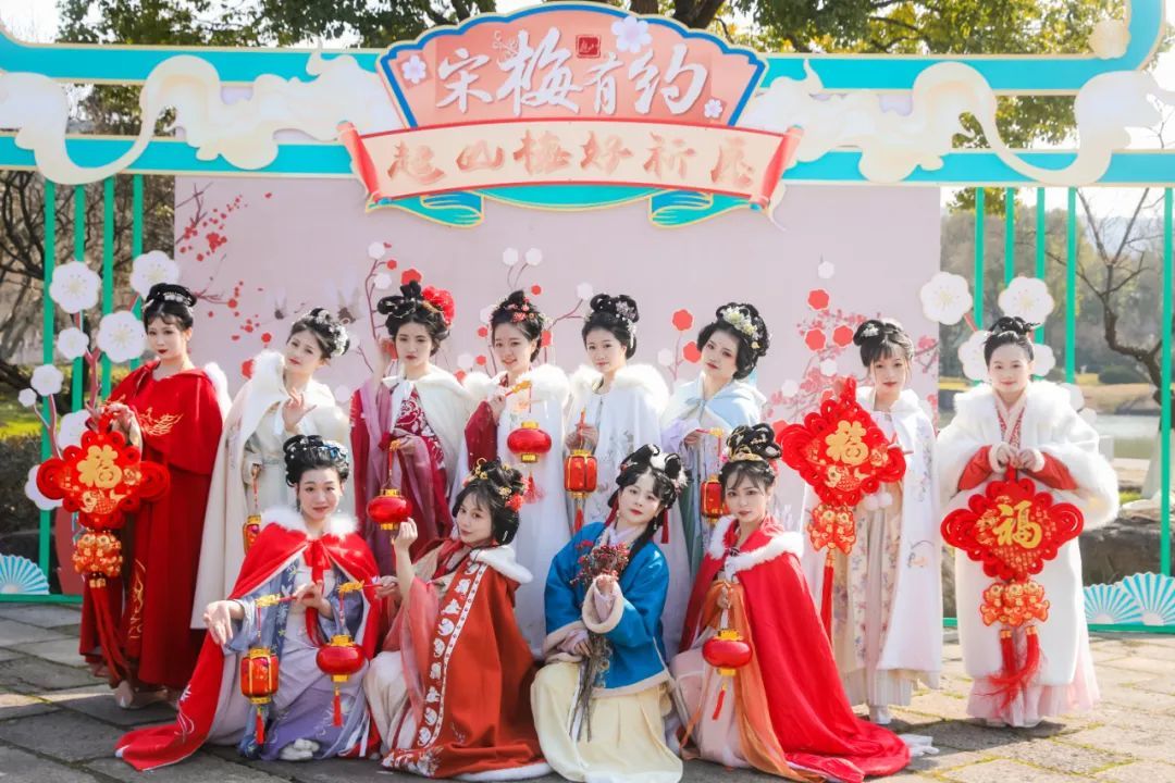 今年第十五届超山梅花节最佳赏梅期恰逢新春佳节期间,前往超山赏梅的游客络绎不绝。景区以“宋梅有约”为主题,特别设置了宋韵梅景、宋韵梅艺、宋韵梅趣、宋韵梅嬉、宋韵梅雅、宋韵梅竞六大板块活动,其中包括集文创市集、游戏体验、美食坊市为一体的创意市集,有油纸伞制作、冷瓷制作体验等非遗手作,还有中国戏剧梅花苑国潮戏剧演艺等。同时还推出了以超山景区为核心区,联动超山、丁山湖、塘栖古镇等地的多条新春赏梅路线,整个景区都洋溢着浓浓的年味。