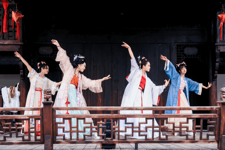宋舞《不惜时光》、唐风《俪人行》、双人舞《万疆》等灵动飘逸的古风舞蹈接踵而至,集齐唐风宋韵,一朝渡回古今……年年有好戏,好戏唱年年,古戏台上的戏曲演艺带来了强烈的视听冲击和切身体验,引得市民游客纷纷驻足观看,啧啧称赞。打年糕迎新春活动则让游客着实体验了一把老底子的年味乐趣。非遗体验馆内的米塑制作、皮影戏体验项目可玩可享,把游客瞬间带进了民俗非遗的时代画卷。
