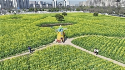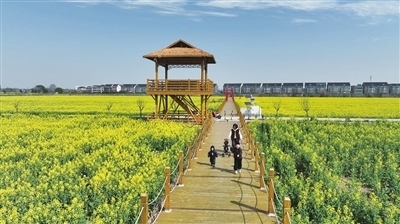 走进油菜花海,微风轻拂,花香扑鼻而来,沁人心脾。游人沉醉其中,零距离感受春天的气息。“正好带小朋友们来春游,感受大自然。”游客沈平告诉记者。