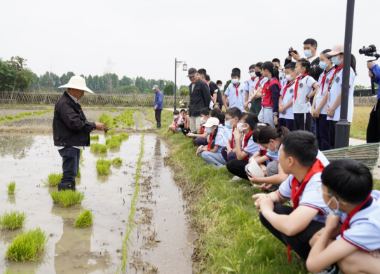 该实践基地由袁隆平学生曾松亭博士发起,落地双桥村约90亩,为临平区唯一一个将农业生产种植与科普示范、研学观光相结合的学农基地。在这里,不仅有“水稻”为主题的系列活动,还开展了贯穿24节气的系列劳作课程与自然教育课程,让青少年在玩耍中体验农耕文化。