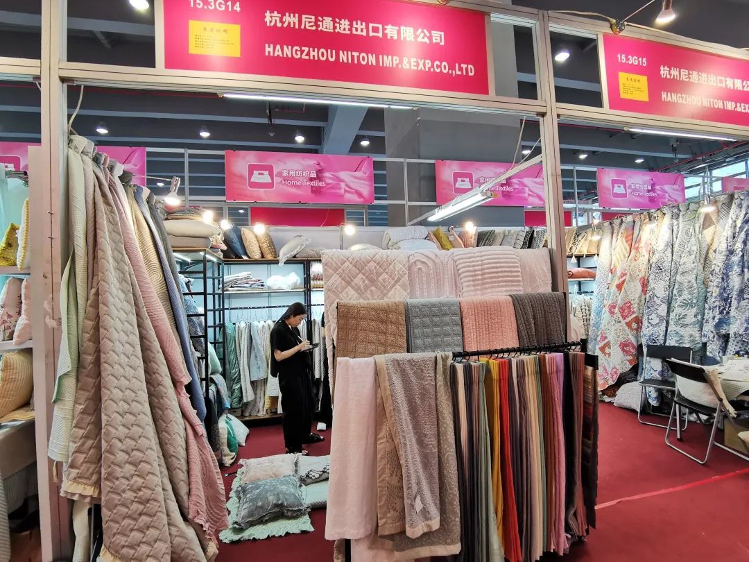 杭州尼通进出口有限公司展位负责人介绍,此次参展为主要产品绗缝被开发了新的提花设计,簇绒的凹凸感、造型感会更强,在将客户需求从低端引导向中高端转移的同时又有着明显价格优势。在复盘这次广交会参展成效时,他们发现,不同国家的客户有着不同的喜好:美国客户定位价格高、品质好;意大利、巴西的客户需求偏向物美价廉的产品;西班牙和法国喜爱提花簇绒的特殊面料;日本则偏向舒适性、手感柔软的面料,这些细节对今后对接各国的客户十分重要。线下展的恢复,让企业拥有了面对面推销产品的机会——看得见、摸得着面料,交流起来更加顺畅。在推介产品、询问需求的过程中,许多专注于欧洲、北美、中东客户群的家纺企业,也开始思考如何拓展东南亚和南美地区的市场。