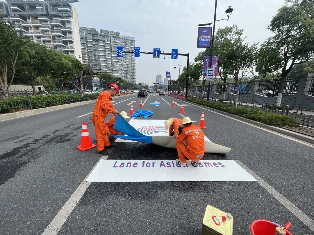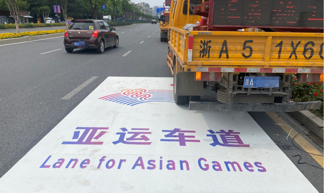 被贴上“亚运车道”标识!