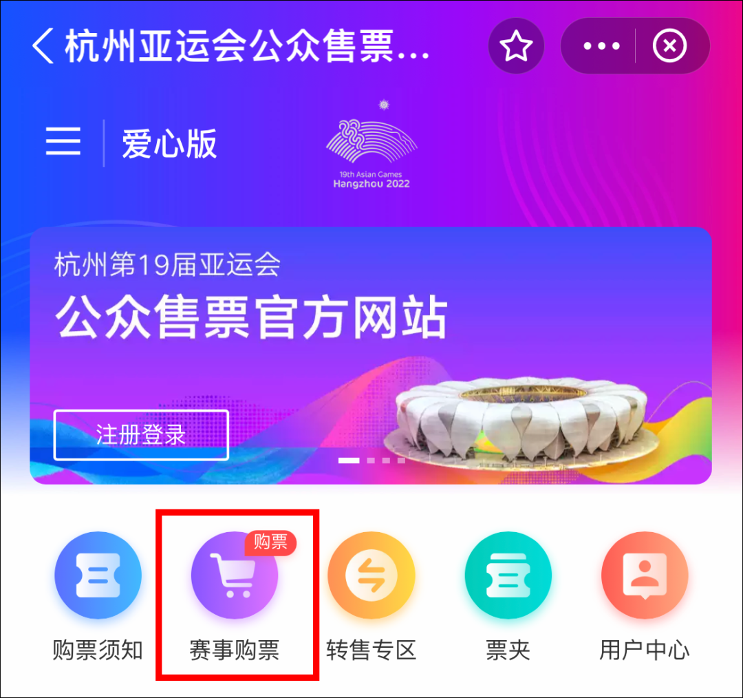 2.选择“赛事购票”。