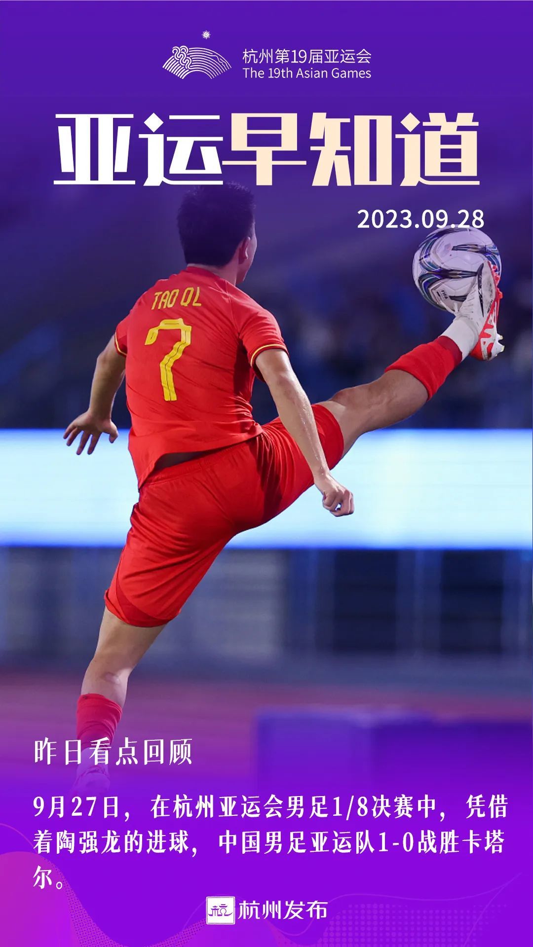 当晚,男子4x100米自由泳接力将打响,中国队在今年的福冈世锦赛上刷新了亚洲纪录,女子4x200米自由泳接力将随后开赛,中国队保持了这个项目的亚洲纪录和亚运会纪录,本次亚运中国队将力争冲金,一起关注。28日,亚运会射击赛场最引人关注的是男子10米气手枪赛场,张博文、谢瑜、刘锦尧3位选手出战,其中小将谢瑜出生于2000年。当日,亚运会飞碟赛场还将产生混合团体双向飞碟的金牌,刘疆驰与19岁小将江伊婷一起代表中国队向金牌发起冲击。28日晚间,足球女子小组第三轮比赛,中国女足再度上场,对阵乌兹别克斯坦。今晚,“铿锵玫瑰”们将有怎样的表现,值得期待。