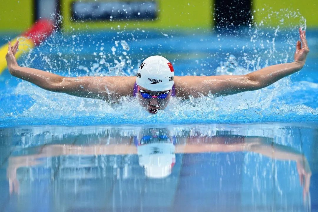 9月27日,中国队选手张雨霏在女子100米蝶泳决赛中夺得冠军。