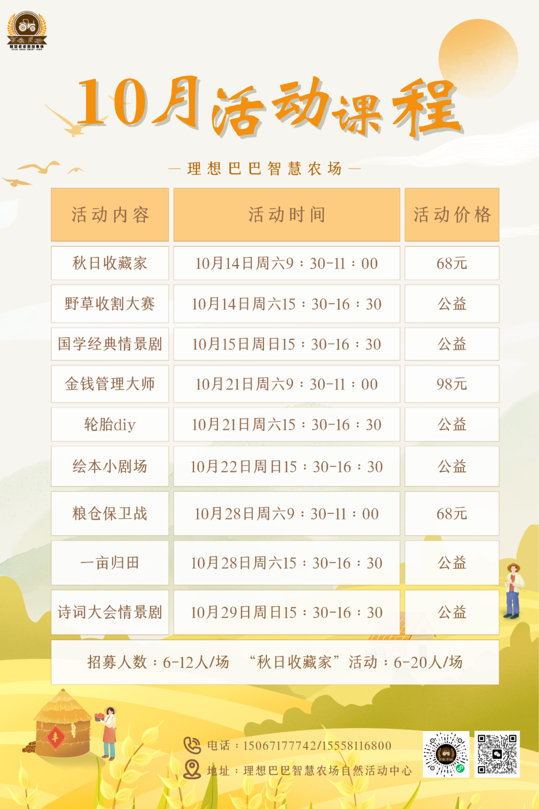 假期出行锻炼活动必不可少!正好理想巴巴智慧农场十月活动安排新鲜出炉,趁着假期来临,提前为孩子物色起来吧~
