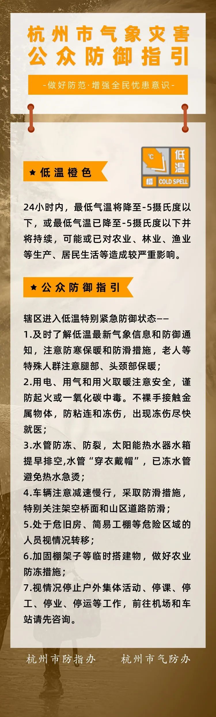 临平发布低温橙色预警