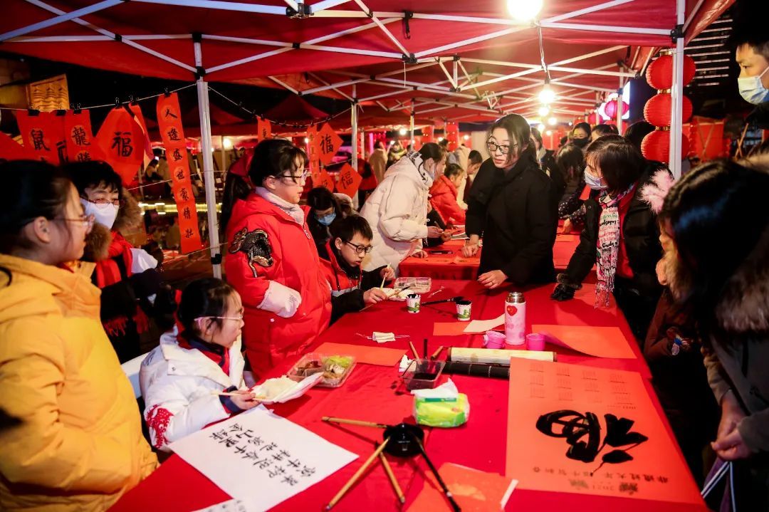 甲辰龙年的脚步越来越近了,迎接新岁的各种元素都变成了“显眼包”,这其中送“福”、送春联始终是最耀眼的那一个,你点我写,现场书画家用浪漫笔墨送出美好的新年祝福。一幅幅龙年春联满载着对新年的祈愿,一个个大红“福”字,寄托着大家对美好幸福生活的憧憬,满满的红色,将迎接新春的氛围感瞬间拉满。