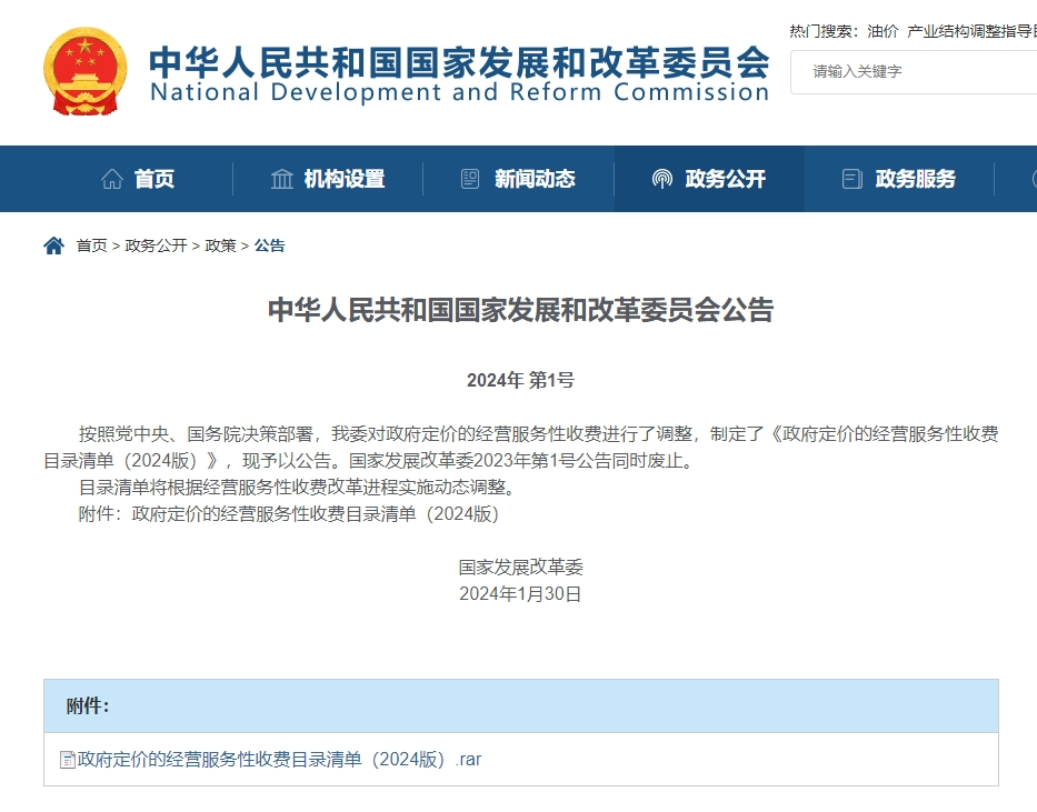 查看公告原文,请点击:中华人民共和国国家发展和改革委员会公告 2024年 第1号