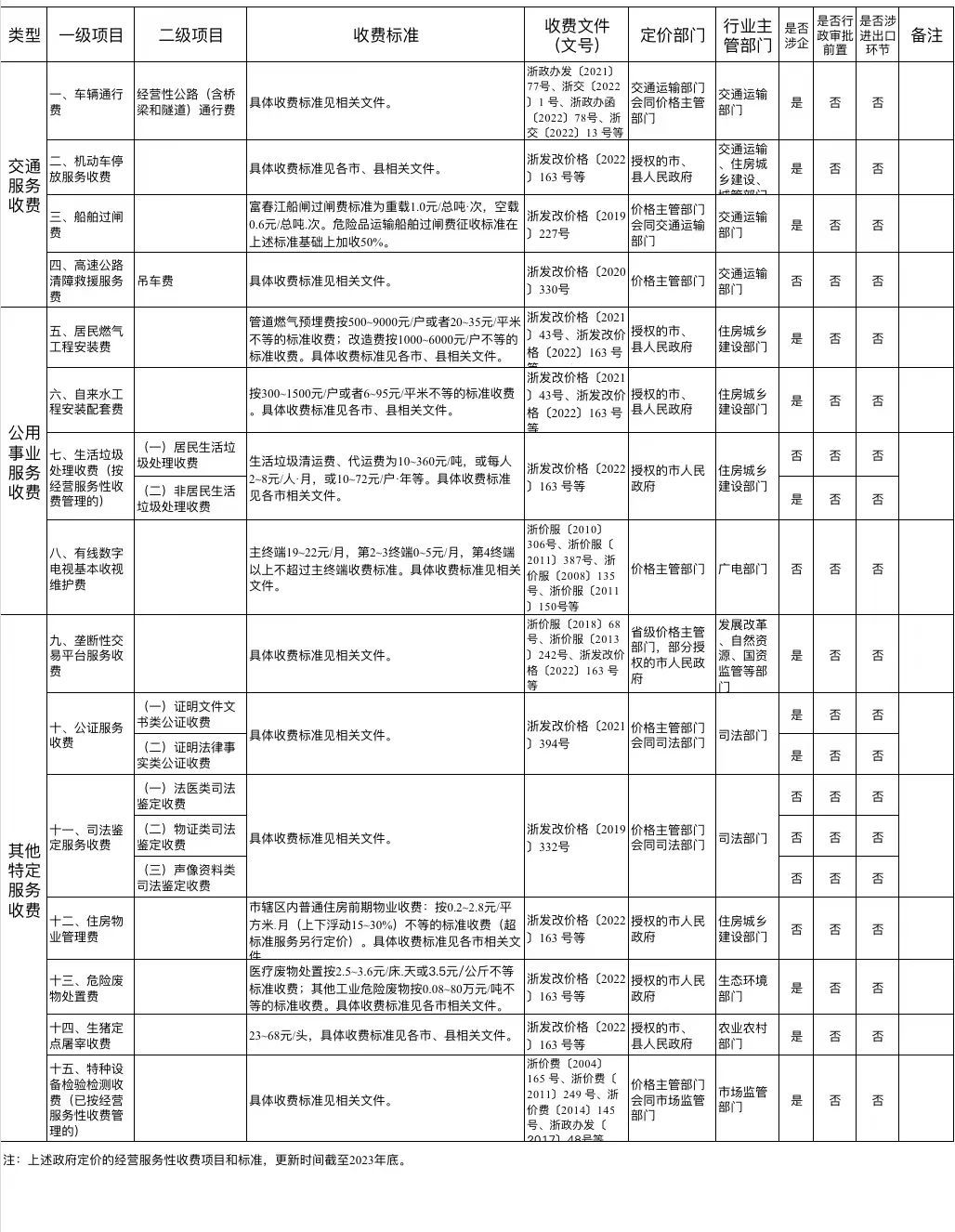 此外,还明确了地方政府定价的经营服务性收费标准,涉及车辆通行费、机动车停放服务收费、住房物业管理费等多个项目。