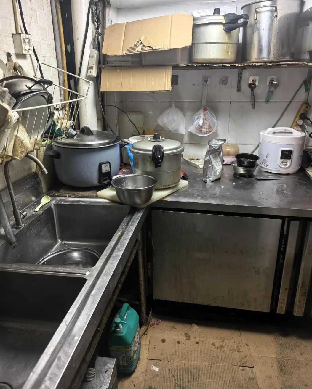 1、操作间杂乱,场所卫生环境较差,物品放置无序;