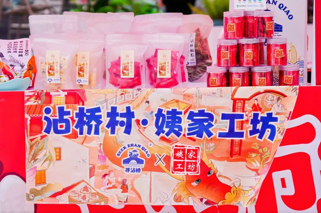 特别设置了“崇贤礼飨”专属摊位,集中展销12款本地特色的农产品。三家村藕粉、大安村豆腐干、崇贤村大米,还有风味独特的锅巴、北庄村咸鸭蛋、皮蛋。地道的“崇贤味道”让市民纷纷下单。此外,临平本地非遗文创产品、手作糕点等也一并亮相。传统与潮流在此碰撞,烟火气与时尚感相互交融。