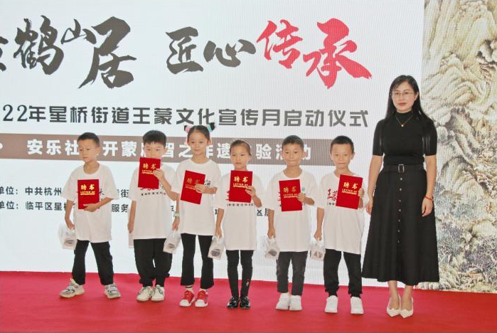 8月31日,“黄鹤山居·匠心传承”2022年星桥街道王蒙文化宣传月启动仪式暨安乐社区开蒙启智之非遗体验活动在临平区星桥街道安乐社区党群服务中心举行。现场发布了中小学生“艺承王蒙”中国画优秀作品“校校”巡展、“畅游王蒙隐居地 艺揽黄鹤山居图”摄影作品征集大赛等王蒙文化宣传月系列活动,聘任了一批为王蒙文化“代言”的“宣传小使者”,进一步浓厚星桥王蒙文化宣传氛围,打响王蒙文化品牌。