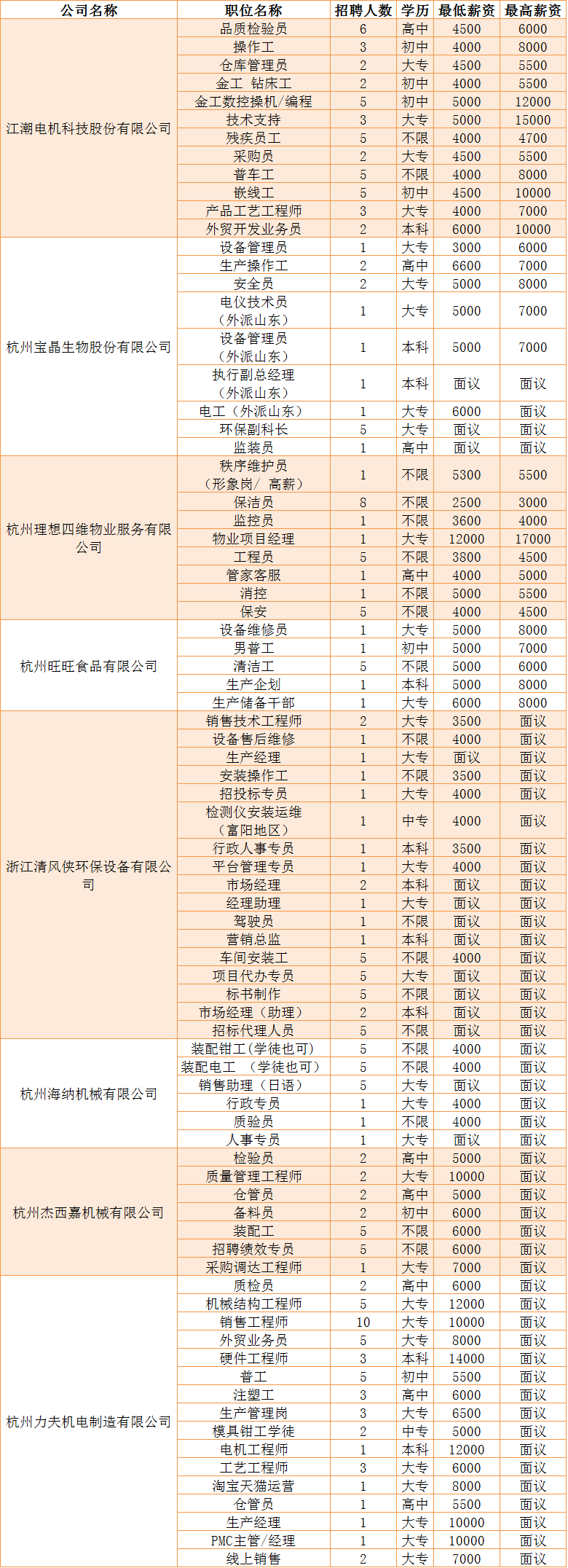 涵盖制造业、服务业、食品加工等岗位~