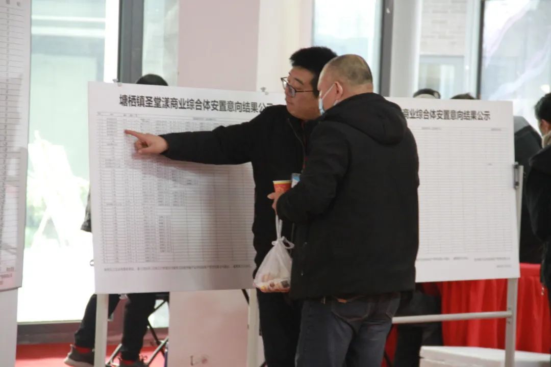 1月28日,塘栖镇圣堂漾商业综合体成功分房,顺利完成了20户商户共计4647.55平方米的分房安置。