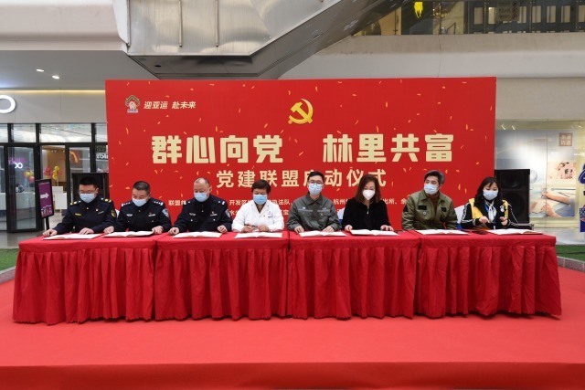 商业综合体党建怎么抓?企业楼宇党建怎么干? 3月4日下午,在临平东湖街道小林社区 “群心向党 林里共富”党建联盟启动仪式上,社区与余杭妇产医院、万宝城购物中心、杭栢城商业中心等8家联盟单位签订合作协议,以党建推动社企融合的方式,探索基层党建与企业发展“共富”新路径。