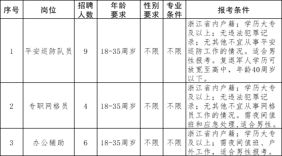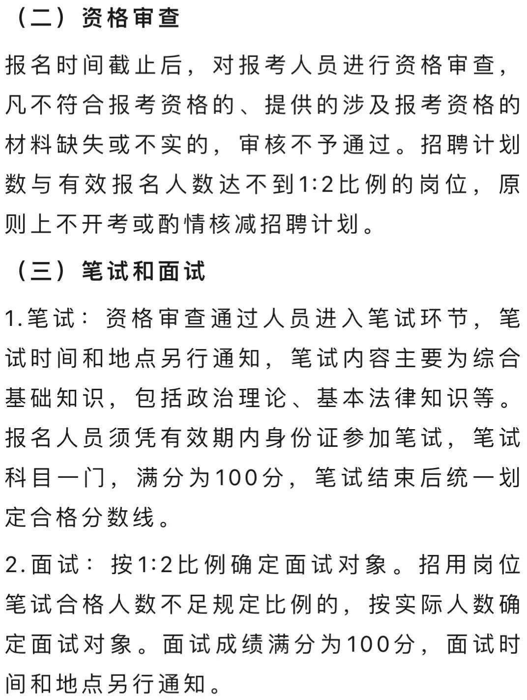 要求报名人员爱岗敬业,遵纪守法,身体健康,本人无违法犯罪记录。经报名、资格审查、笔试、面试、体检、联合审查、公示等程序后择优录用(笔试、面试时间,另行通知)。