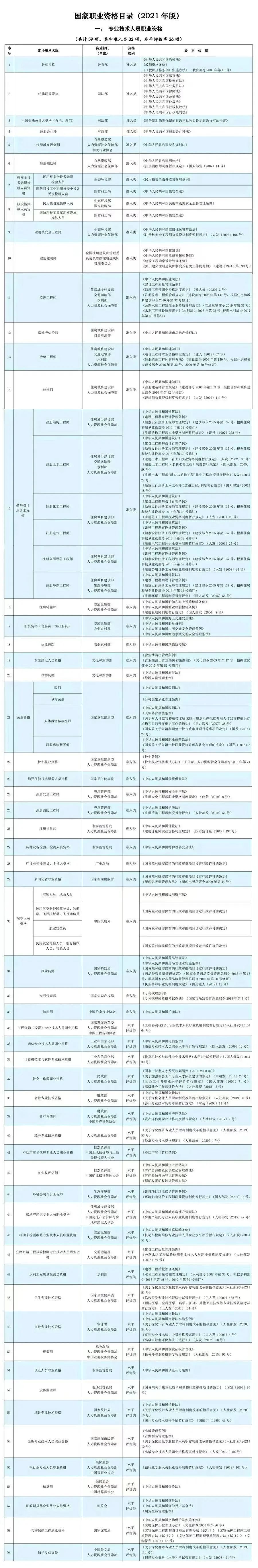 不管大家准备考哪类证书,请认准由人社部发布的《国家职业资格目录》。按照国家职业资格目录,准入类专业技术人员职业资格有33项,准入类技能人员职业资格有13项。